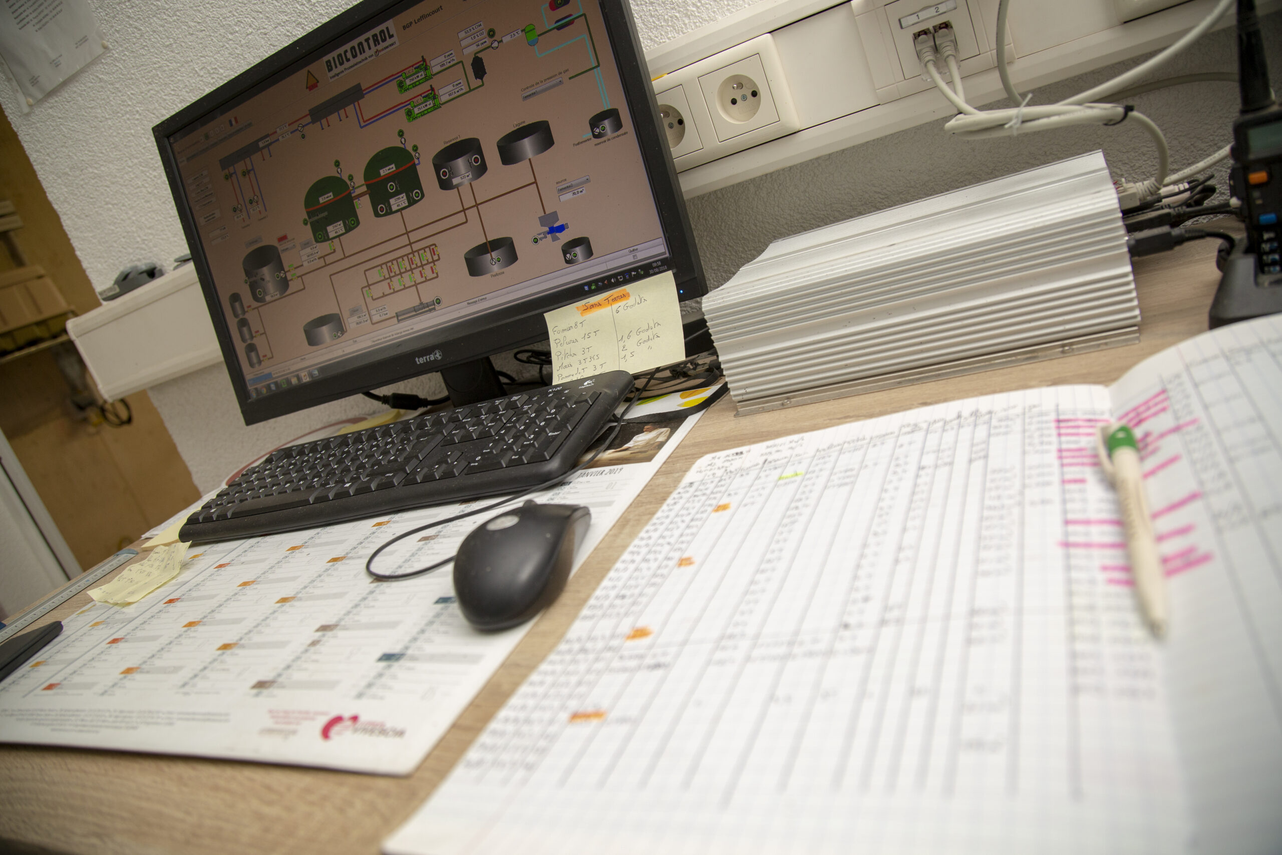 L’alimentation en substrat de l’unité comme la gestion du biogaz qu’elle produit sont pilotées par le logiciel de contrôle et de visualisation. L’ensemble des paramètres mesurés (températures, pressions, volumes, etc.) est collecté et peut être enregistré sur différents ordinateurs. Ce système, mis au point par BioConstruct, permet d’optimiser les processus de l’installation et d’en réduire les coûts de fonctionnement. Une alimentation de secours permet l’alimentation du logiciel et de l’ordinateur de contrôle en cas de panne de secteur. BioConstruct s’adapte en permanence aux demandes administratives afin de réaliser des rapports automatiques.